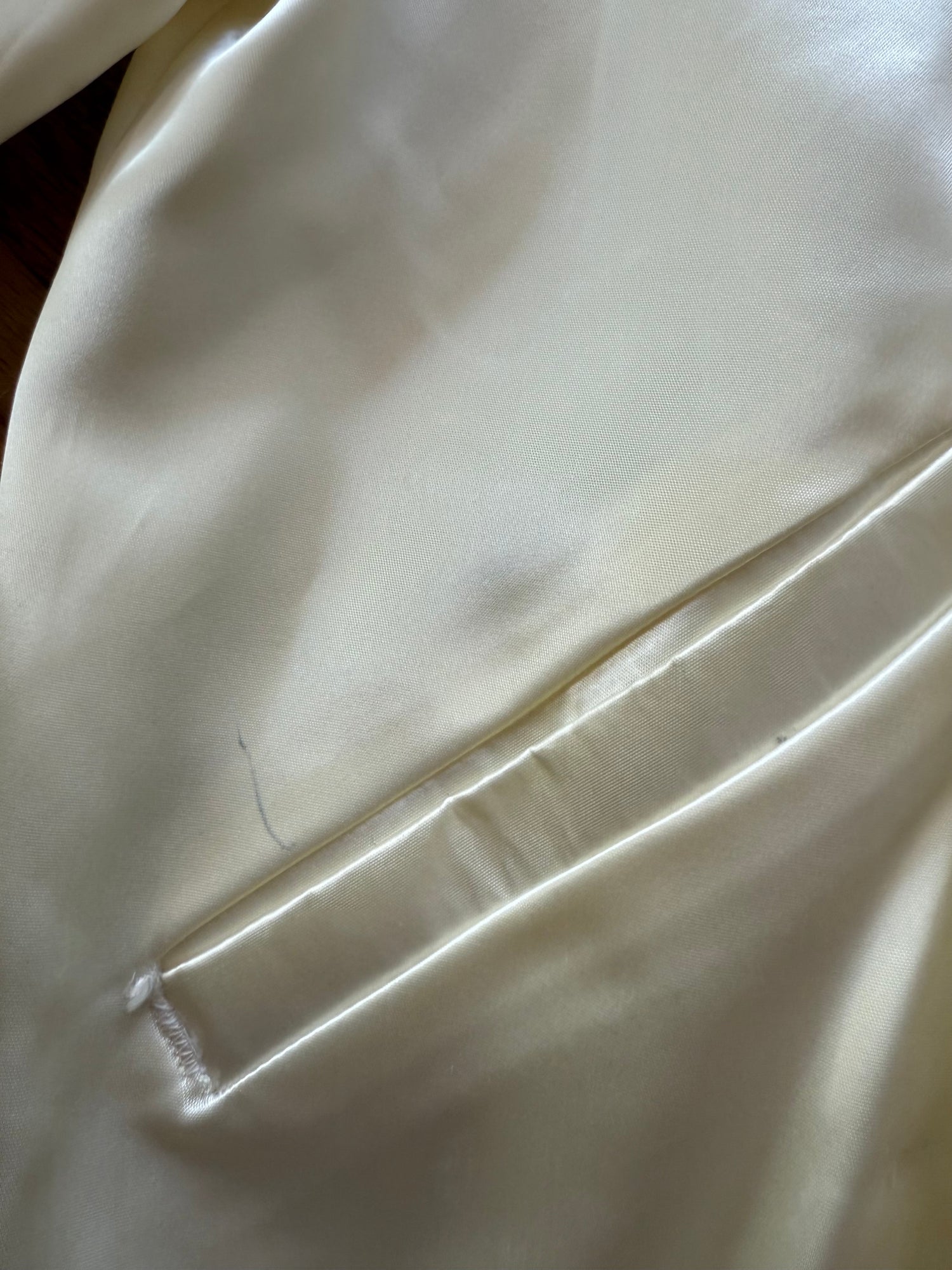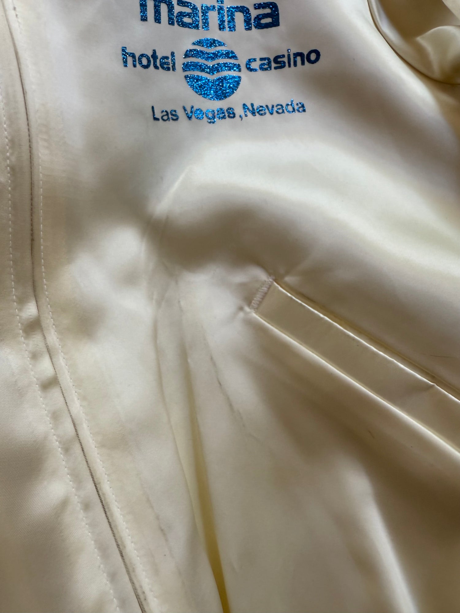 Has a couple marks on the front as pictured. Because of the glitter details this piece cannot be dry cleaned.
